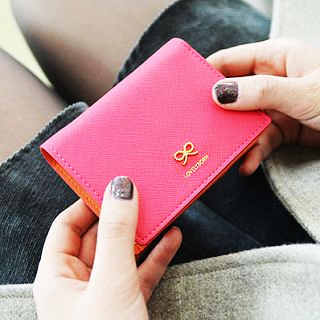 【Funzakka】經典蝴蝶結票卡名片短皮夾-寶石桃粉