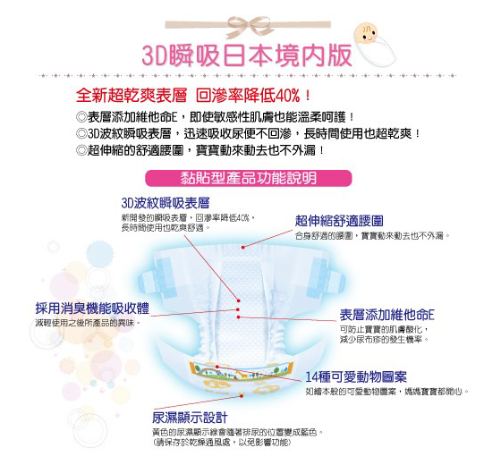 1箱 NT$1799 原價$3390 含運※注意事項:日本境內版版型較一般尿布稍小,請購買前確認好尺寸,本商品只能接受整箱完整商品退換貨,不接受拆退