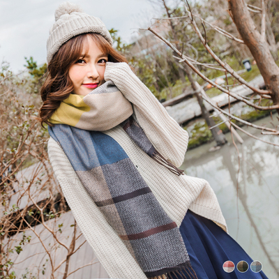OB嚴選-1102新品 雙面格紋撞色流蘇圍巾.3色 日本女裝品牌有哪些