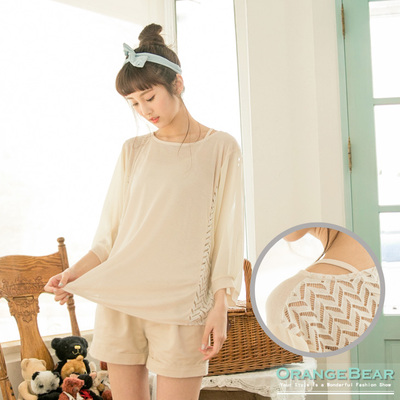 0327新品 微光風采~兩件式素色面料拼雪紡布蕾絲鏤空上衣.3色