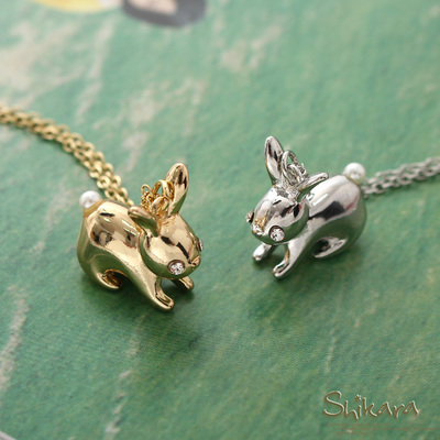 1225新品 可愛閃亮~水鑽眼睛兔子造型墬飾項鍊.2色哪裡買?(點我