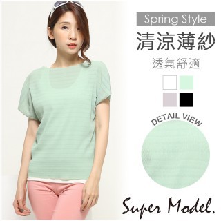 【名模衣櫃】雪紡橫紋短袖上衣-共5色(M-XL適穿) ★福利價★
