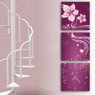 【TIME ART】靜音機芯三聯式時鐘 無框畫鐘 二畫一鐘掛鐘(50*50*3.5cm S3-053) ☆近期銷售最快☆