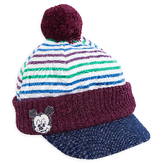 【麗嬰房 Disney】米奇小帽沿條紋毛線帽(灰紫) ♣將調回原價♣