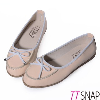 【TTSNAP】豆豆鞋-MIT 全真皮超軟Q蝴蝶結平底鞋(膚) ♥新貨到♥