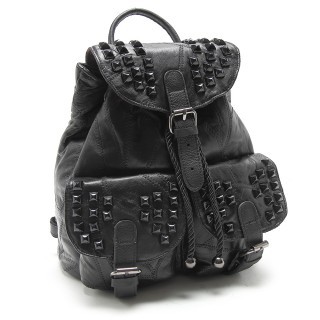 【101 Queen】倫敦街頭時尚派對真皮鉚釘後背包(經典黑) ●人氣必BUY●