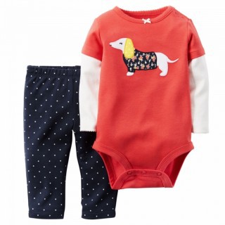 Carter/oshkosh】假兩件長袖包屁衣+長褲 套裝2件組 - 紅色貼花臘腸狗(121G129) ... 假兩件長袖包屁衣+長褲 套裝2件組 ...