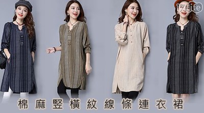 買到賺到棉麻-橫紋線條連衣裙驚喜商品-好用推薦