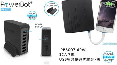 美國聲霸PowerBot-PB5007 60W 12A 7埠 USB智慧快速充電器(黑) 討論,推薦,開箱,CP值,熱賣,團購,便宜,優惠,介紹,排行,精選,特價,周年慶,體驗,限時
