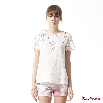 【KeyWear奇威名品】100%苧麻細緻刺繡蕾絲短袖上衣 - 心得分享