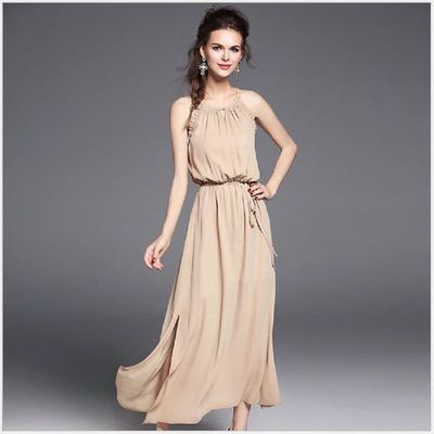 【特價】(現貨+預購 RN-girls)-歐歐美夏季優雅波西米亞細肩帶收腰繫繩長連身裙哪裡特價