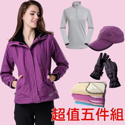 【JORDON】超值五件組 真女神 GORE-TEX+POLARTEC防水透氣外套(1072)