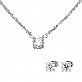 momo購物網-【Passion】冰雪名媛八心八箭晶鑽墜鍊套組(墜鍊+耳環-針式)