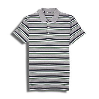 momo購物網-【SERIWAY】早春休閒網眼條文POLO(麻灰綠條文搭配)
