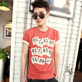momo購物網-【L’AME CHIC】韓國俏皮數字拼接圖案短袖窄版TEE