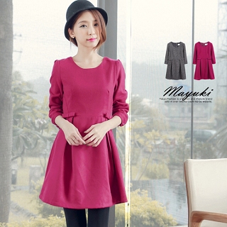 最近在找【MAYUKI】蝴蝶結打褶毛料洋裝-S.M.L商品,
