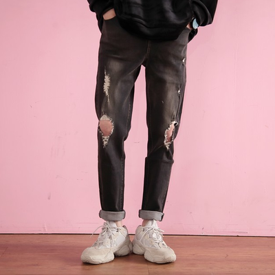 【本季限量優惠】韓系膝破壞造型彈性牛仔長褲(黑色) 29118 開箱炫耀文團購人氣產品