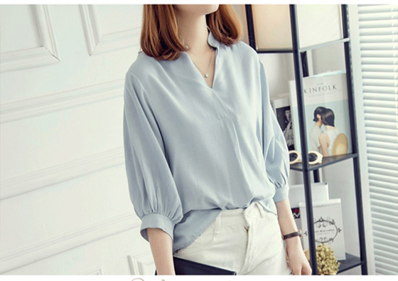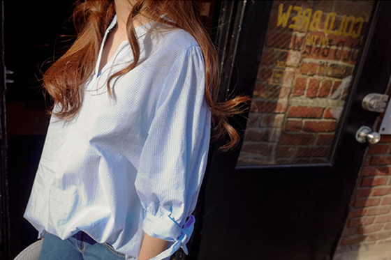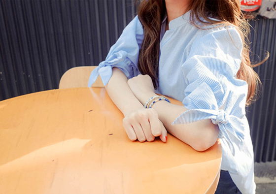 ●小V領搭配造型袖口,打造甜美小心機
