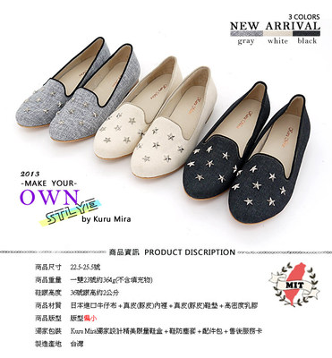 Kuru Mira☆率性私著☆台灣製星星鉚釘牛仔樂福鞋*灰商品網址: 商品訊息功能: 台灣老師傅純手工打釘讓一顆顆的星星在足履間綻放 ...