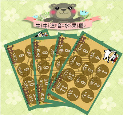 自製桌遊:可愛牛牛的注音水果園桌遊(聲符+韻符認知) 【設計者】兔子老師【內容物】1.牛牛水果園遊戲紙4張(36CM*25CM)2.水果聲符+韻符圖卡37張(7CM*4CM)(護貝須另+80元)3....