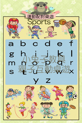 自製桌遊:"超大張"運動配對聯想桌遊(英文版)(配對/聯想/聽力練習)(一款兩玩)【內容物】1. "超大張"運動配對聯想遊戲紙一張(73公分*51公分)2.聯想提示卡12張(尺寸A4的1/4)3.中文...