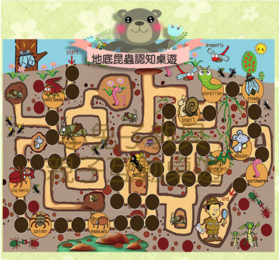 (中文版)自製桌遊:"超大張"地底昆蟲認知桌遊(英文/中文版)【內容物】1. "超大張"地底昆蟲認知遊戲紙一張(73公分*51公分)2.昆蟲王勝利卡50張(名片大小)3.中文說明書一份 4.骰子1顆...