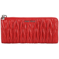 皮夾、 小型皮件、 配件,miu miu,歐系名牌包、配件,精品手錶、珠寶配飾,miu miu Matelasse Lux 牛皮L型拉鍊長夾(紅色)
