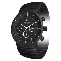 OBAKU 極簡原味主義三眼時尚腕錶(全黑)