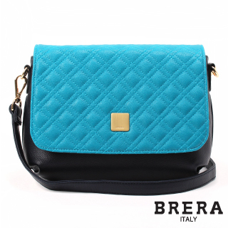 【BRERA】珍珠菱格紋掀蓋式馬蹄小包(薄荷藍)