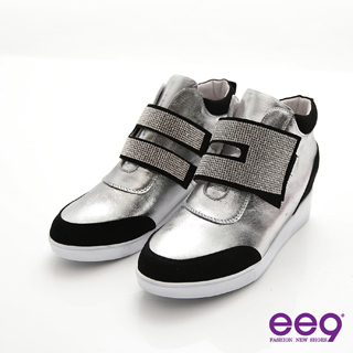 momo,momo購物台,momo購物網>【ee9】潮流撞色-金屬爆裂紋水鑽魔術貼內增高休閒鞋(注目黑)