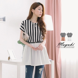 momo,momo購物台,momo購物網>【MAYUKI】直條紋配色縮腰上衣