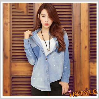 商品訊息描述: 休閒假口袋油漆噴濺,舒適高品味弧形下擺,圓形鈕扣可愛美觀