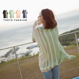 【東京著衣】漸變直條紋寬版針織衫(日系)