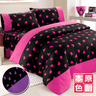 日系本布風,年輕活力氣息活性印染,色彩鮮艷亮麗愛心圖案設計,經典不敗兩用被床罩組,方便好用