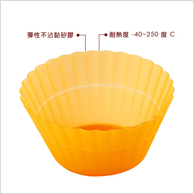 商品訊息功能: 法國專業餐廚耐熱度達250度C適杯子、瑪芬蛋糕4色不同造型模具不沾黏矽膠