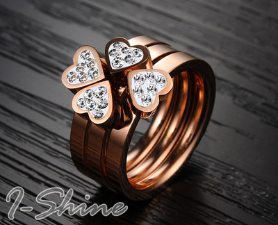 momo,momo購物台,momo購物網>【I-Shine】浪漫際遇-四葉草愛心鑲鑽鈦鋼戒指(3件套戒) ★★★