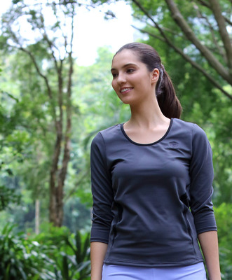 推薦銀盾silver服飾-VITAL STRETCH 女運動配色七分袖上衣-深灰