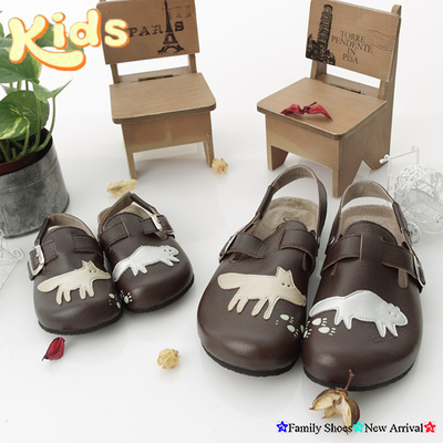 Kids小狐狸童話前包後空軟木鞋-咖色大人款