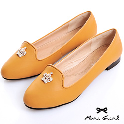 Mori girl好感祕訣.水鑽皇冠霧面素色樂福鞋*棕