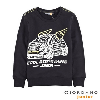 momo購物台,momo購物網:【GIORDANO】童裝趣味圖案毛巾布長袖棉T(23經典黑)