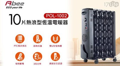 【最優惠價格】【快譯通Abee】10片扇葉波浪型恆溫電暖器 POL-1002 好康偷偷說