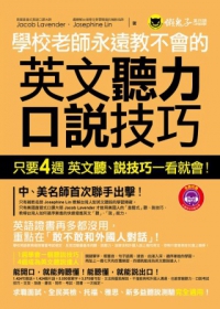 top 學校英文老師再強,也有他們教不會的事!老外的口音,學校老師怎麼教也教不會。因為這是天生的! 英文中的語調、連音、滑音、輕重音, 絕對是英文聽、說中最難教,也是最難學的一部份。 英語聽、說若能簡單學, 又何必弄得複雜? 又何必分開學習? 結合台、美籍英語教學權威, 讓你英語「聽」、「說」一起搞懂, 1週學會一個聽、說技巧, 只要4週就能成為英文聽、說達人! 關鍵單字、輕重音、句子語調、連音,由淺入深、循序漸進的學習。再加上一週七天的反覆練習,四週就能成為英文聽說達人! 第一週-關鍵單字-句子是由單字組成,只要能抓到關鍵字,就能掌握句意。 第二週-輕重音-分清楚句子的輕重音,為掌握語調起伏奠下基礎。 第三週-句子語調-模擬外國人說話的語調,說起話來就能夠更自然。 第四週-連音-外國人最會、台灣人最容易搞混的連音,一一破解。 只有台灣老師才能瞭解台灣人的英文學習障礙 只有外國老師才能教會學生最道地的英語聽說能力 中、美名師首次聯手出擊! 由補教老師 Josephine Lin 搭配美國老師 Jacob Lavender,用美國人的直覺式聽、說技巧,教導台灣人如何循序漸進的增進英文聽、說能力,幫助台灣人跨越對英文聽說的學習障礙。 英語證書再多都沒用,重點在敢不敢和外國人對話! 學校英語教育過度著重考試檢定,反而忽略最基本的聽、說能力。沒辦法和外國人說上幾句英文,你有什麼資格在社會上競爭! 能開口,就能夠聽懂!能聽懂,就能說出口! 1,424句會話+1,424個片語+3,050個單字+3,570個句型、文法與重點解說。不僅能夠和外國人溝通,也能掌握聽力、口說考試技巧。交友、旅遊、書信、寫作、考試、證書,一次搞定。求職面試、全民英檢、托福、雅思、新多益聽說測驗完全適用!使用說明 1. 抓取關鍵單字,瞭解句子訊息 第一週學習重點-關鍵單字(Key Words),句子是由不同單字組合而成的,只要能夠抓到句子裡的關鍵訊息,就能夠拼湊出句子的意思。找出關鍵單字是英語聽說技巧中最基本的能力,本單元將以套色標出句中的關鍵字。在一週七天的反覆練習之下,就算聽不懂整句話,也能抓到八成的意思,就算說不出漂亮的句子,也能夠將意思完整表達。 2. 分清楚輕重音,奠下良好基礎 第二週學習重點-輕重音(Accent),句子有高低起伏的語調,也有要強調的重點內容,重點重讀,不重要的訊息輕聲帶過,伸展背靠墊,唯有分清楚輕重音,才不會說起話來像機器人般平板,但要說的像外國人一樣自然,並非一蹴而成的,本週先從掌握句中輕重音開始著手,以大點及套色標註主要強調的重點,以小點標註次要的重點,透過反覆練習,為後續學習奠下基礎。 3. 模擬老外語調,聽得更懂說得更自然 第三週學習重點-句子語調(Intonation),唯有模仿以英語為母語的外國人說話的語調,才能夠說得道地。本書獨創以圖象表示語調起伏,並以套色字凸顯句中語調需上揚的關鍵地方,搭配箭頭標示句尾的語調變化,使讀者更容易掌握語調的高低起伏,才能夠說的自然。 4. 最難懂的連音變化,一一破解 第四週學習重點-連音(Liaison),在英語聽說中,台灣人最容易束手無策的就是英語會話中常出現的連音變化,但連音其實是有規則可循的,除此之外,唯有多聽多說,才能夠熟悉運用連音,本週以曲線及套色標註句中出現連音變化的地方,只要搭配MP3並且多練習,再多的連音也不怕。 5. 學習進度表、循序漸進學習 作者整理出英語聽說的四大技巧:關鍵單字、輕重音、句子語調、連音,再針對台灣人對英語聽說的排拒心理,制定28天黃金學習表,由最簡單的抓取關鍵字入手,一直到最不容易掌握的連音技巧,由淺入深、循序漸進的學習,一週只需學會一個技巧,加上一週七天的反覆練習,只要四週就能成為英語達人! 6. 一次學好基本概念、實際應用 每個技巧皆在每週的剛開始做整體的講解,方便讀者先掌握該週的學習重點,並在該週反覆練習運用。而為了讓讀者一次學習到最完整的英語,作者更在每個句子的下方詳盡補充句型、單字、片語、文法,更針對特殊的例子補充說明在英語聽說上需注意的事項,讓讀者不僅學會英語聽說技巧,基本英語能力也一併提升! 7. 英語就是要聽老外說,什麼場合就該說什麼話 全書句子皆由專業外籍錄音員親自錄音,就算臨時忘記該週的學習重點,也能夠邊走邊聽MP3,模仿外籍錄音員的語調,說出最道地的英文!就算沒有書,只要這次能夠聽得懂老外在說什麼,下一次就能夠說出口!句子後面也貼心附上使用情況的燈號,什麼時候可以說什麼話一目瞭然!作者簡介Jacob Lavender ■ 美籍教師,常春藤名校畢業,主修英語教學。 ■ 在學期間便常以語言交換,和赴美的留學生交流,畢業以後便前往亞洲各國擔任補習班老師,在日本、韓國、馬來西亞、新加坡、泰國、大陸皆有學生。目前和妻子定居台灣,並開設私人補習班。 ■ 深知台灣學生在面對英語聽力和口說時,容易有畏懼恐懼的心理,因此在教學上多採用循序漸進的方式,教導學生掌握英美人的口說技巧,以外國人的方法學好英語聽力和口說。Josephine Lin ■ 大學時就讀台灣大學,畢業後前往美國威斯康辛大學(University of Wisconsin)深造,拿到英語教學碩士。 ■ 擔任多家美語補習班的教學講師、豆豆果英語教學總監、台中縣僑忠國小美語課程指導老師、康軒英語國中教材全國講師、清雲大學英文專題演講講師。 ■ 除了專業語言