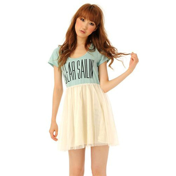Fashion Cookie-JURIANO JURRIE 紗裙下擺T恤連身裙 (綠色) - Fashion Cookie