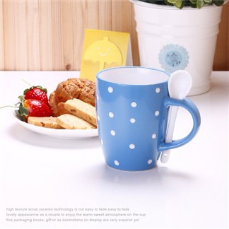 TaiCheng甜蜜繽紛彩虹點點陶瓷馬克杯附湯匙(天空藍)