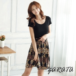 【ZARATA】歐美時尚波西米亞印花雪紡洋裝(黑色)