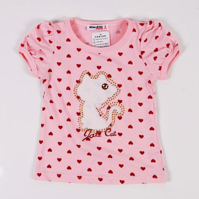 Mamibuy 華人第一嬰兒用品推薦網站我家童裝 寶坤Mina 春夏新款洋裝 可愛貓咪水鑽造型T恤【12141】 | :::Mamibuy 華人第一嬰兒用品推薦網站:::
