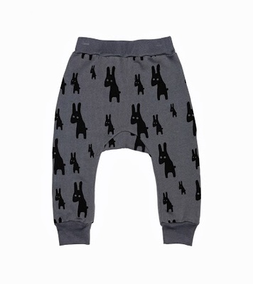 乍看有點像小狗的小兔兒,是Beau LOves為了自己四歲生日向媽咪下的『戰帖』圖案,設計師媽咪Faye Wilde把原本毛茸可愛的小兔兒設計成兩眼炯炯有神又滿腹心事的淘氣兔,還以數大便是美的聲勢攻佔同樣也是兒童時尚圈紅不讓的飛鼠褲,兩大主角聯手,時尚聲勢可期