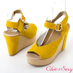 Chic&Sexy 完美心機˙草編紋底深V造型楔型涼鞋*黃* 堅持嚴選優質皮革 ~ 堅持手工細緻製成 ~ 堅持設計流行與舒適 ~ 這是chic&sexy所堅持的設計信念 ~