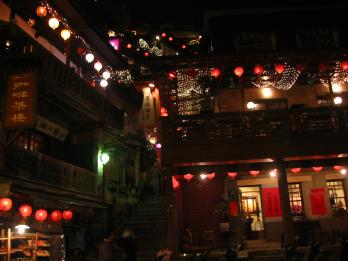 到台灣工作的第二年我才有機會和幾個朋友拜訪九份。不過那時候我一心只顧著和一個滿談得來的男生聊天,忘記抬頭看看九份的長相,也許,是我那時生活歷練還不夠,並沒有用心去體會九份的美,到現在腦中留存的記憶只有一排又一排擠死人的商店街,腦恨沒有更多的時間仔細逛逛,還有那間要爬很多階樓梯才能到九份國小門口的九份阿婆芋圓老店。最後是在某一家古色古香的咖啡茶藝館喝茶聊天,我早已經累得沒精力和朋友聊天,然後傍晚就回台北了。根本也沒見過九份的夜景。