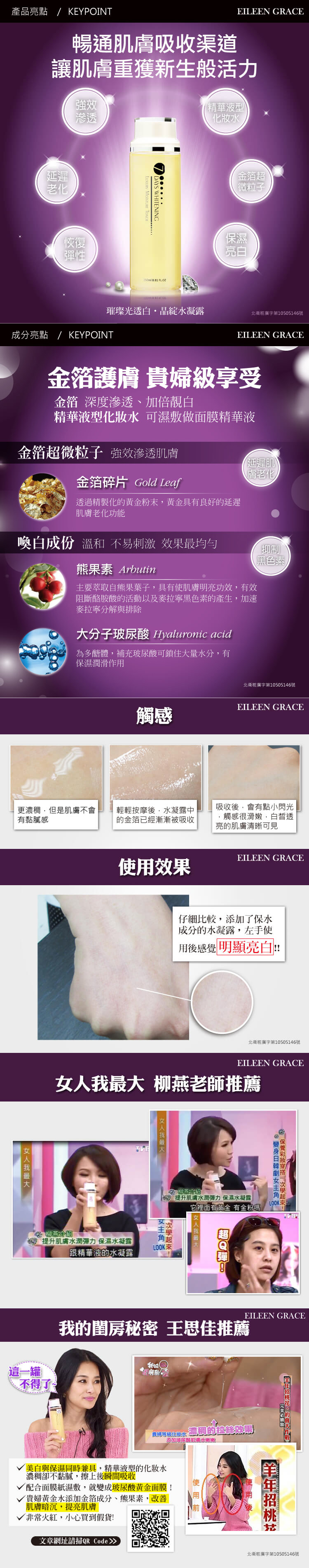 商品名稱: Eileen Grace 妍霓絲~璀璨光透白晶綻水凝露(250ml)